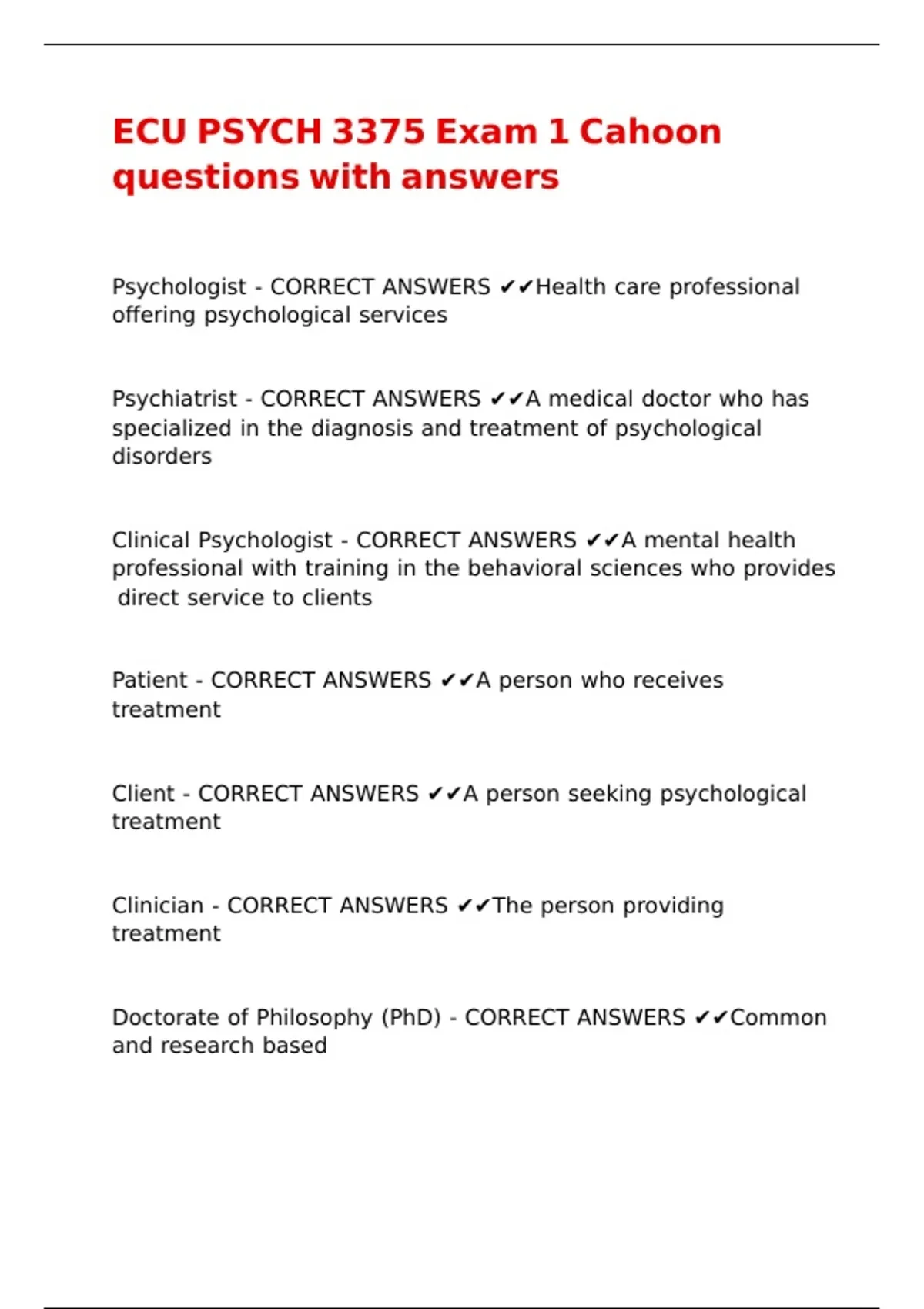 ECU PSYCH 3375 Exam 1 Cahoon questions with answers