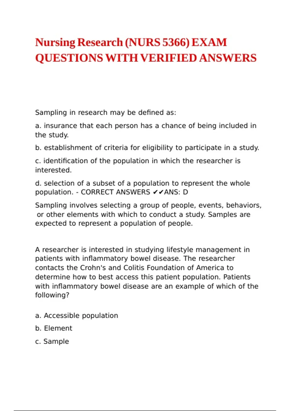 d. target population. - CORRECT ANSWERS ✔✔ANS: C