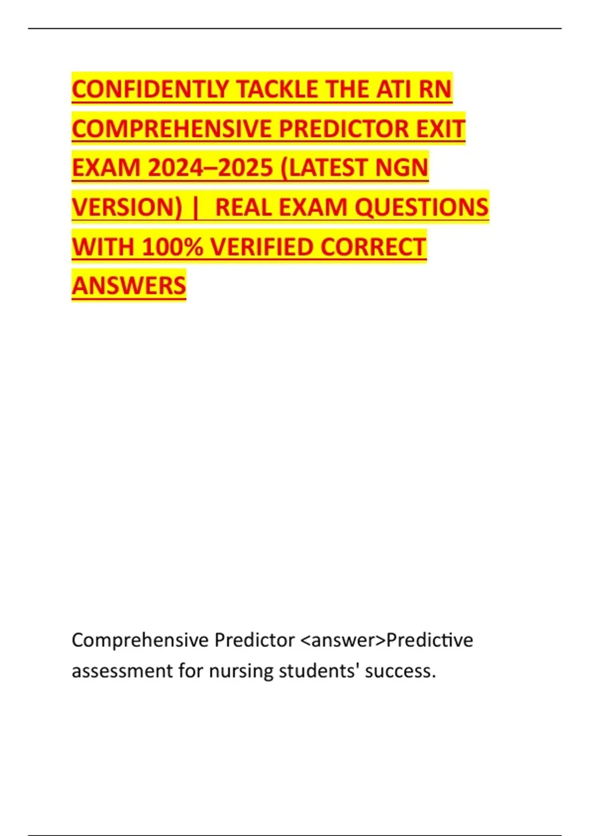 Exam (elaborations) ATI-RN Comprehensive Predictor