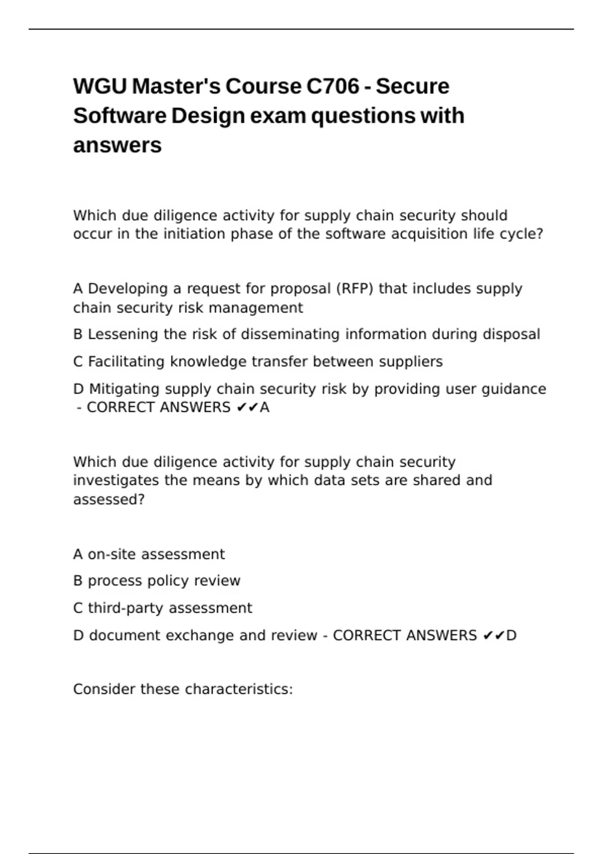 WGU Master-s Course C706 - Secure Software Design exam questions with answers