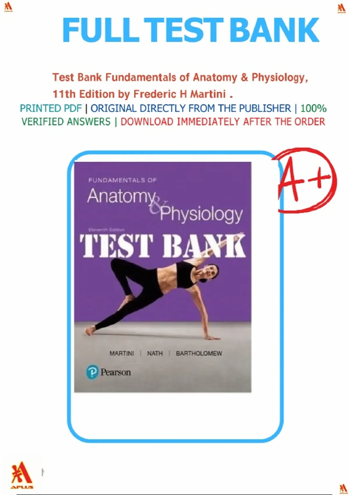 Test Bank for Fundamentals of Anatomy & Physiology, 11th Edition by Frederic H Martini, Nath.|All chapters 1-29 covered. |Latest updated version, Graded A+