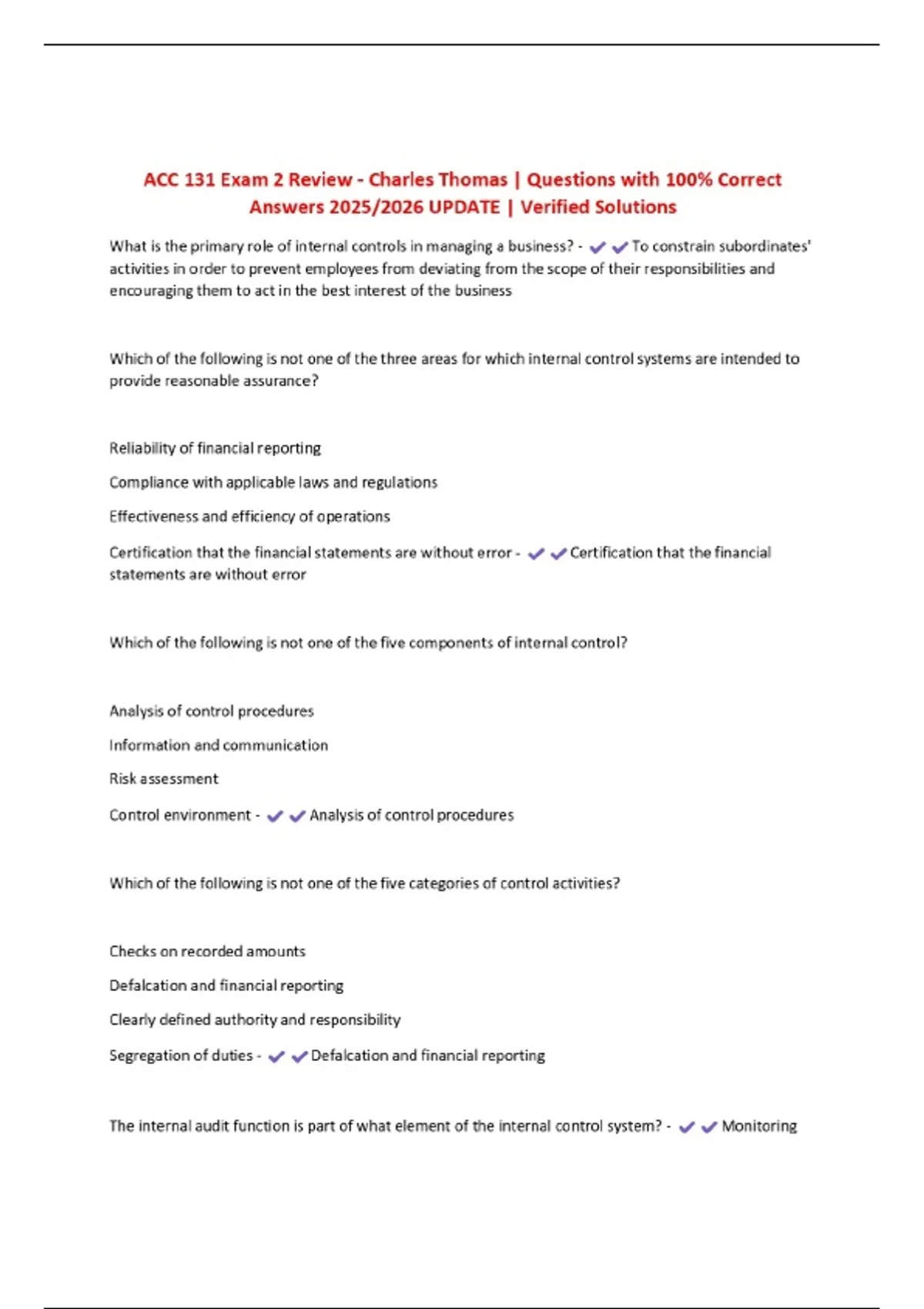 ACC 131 Exam 2 Review - Charles Thomas | Questions with 100% Correct Answers 2025/2026 UPDATE | Verified Solutions
