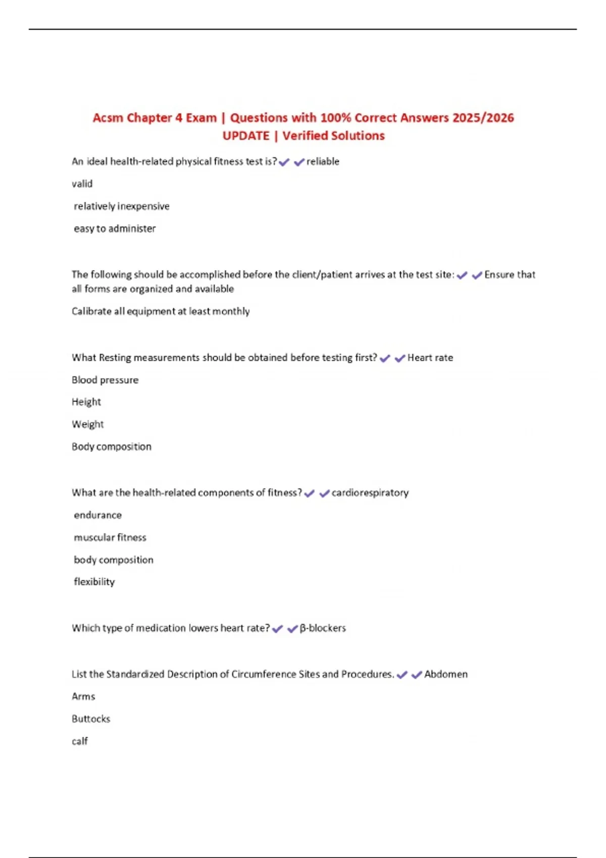 Acsm Chapter 4 Exam | Questions with 100% Correct Answers 2025/2026 UPDATE | Verified Solutions