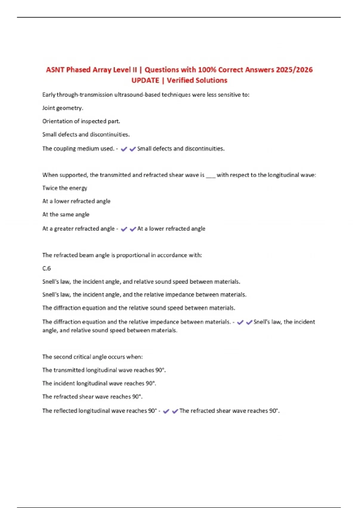 ASNT Phased Array Level II | Questions with 100% Correct Answers 2025/2026 UPDATE | Verified Solutions