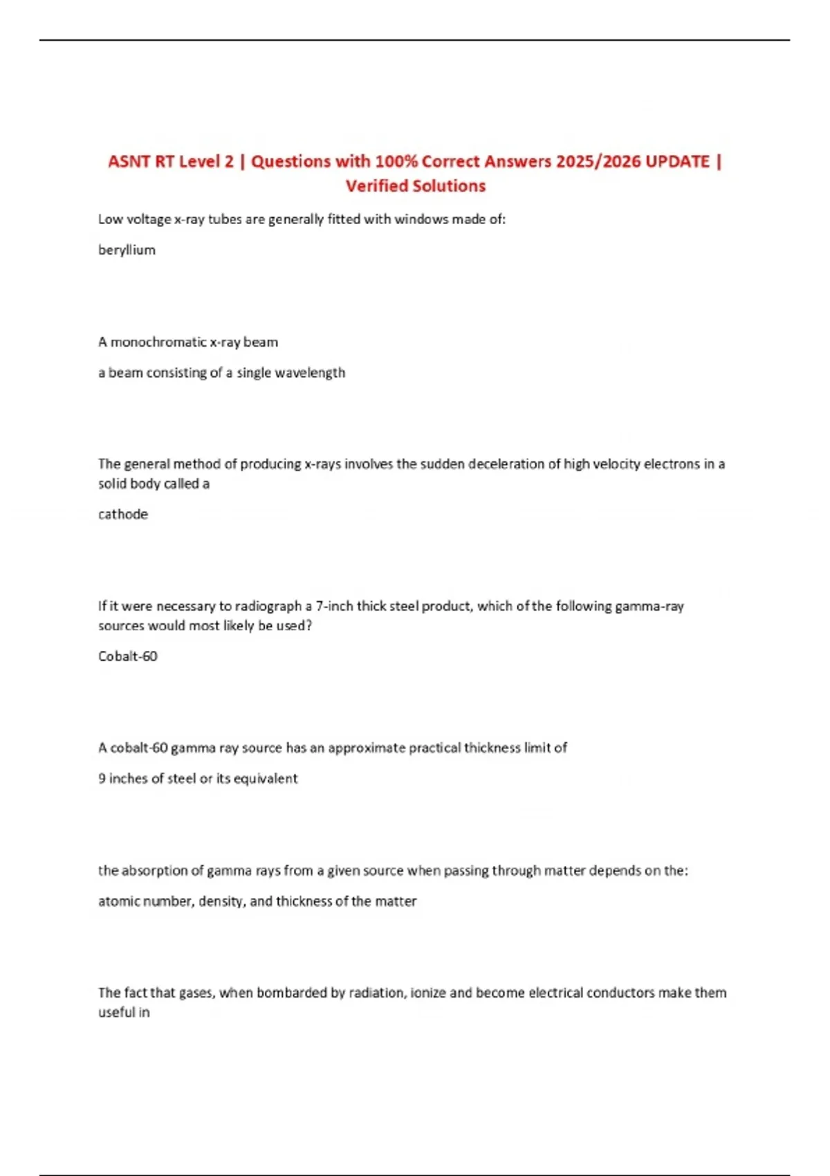 ASNT RT Level 2 | Questions with 100% Correct Answers 2025/2026 UPDATE | Verified Solutions