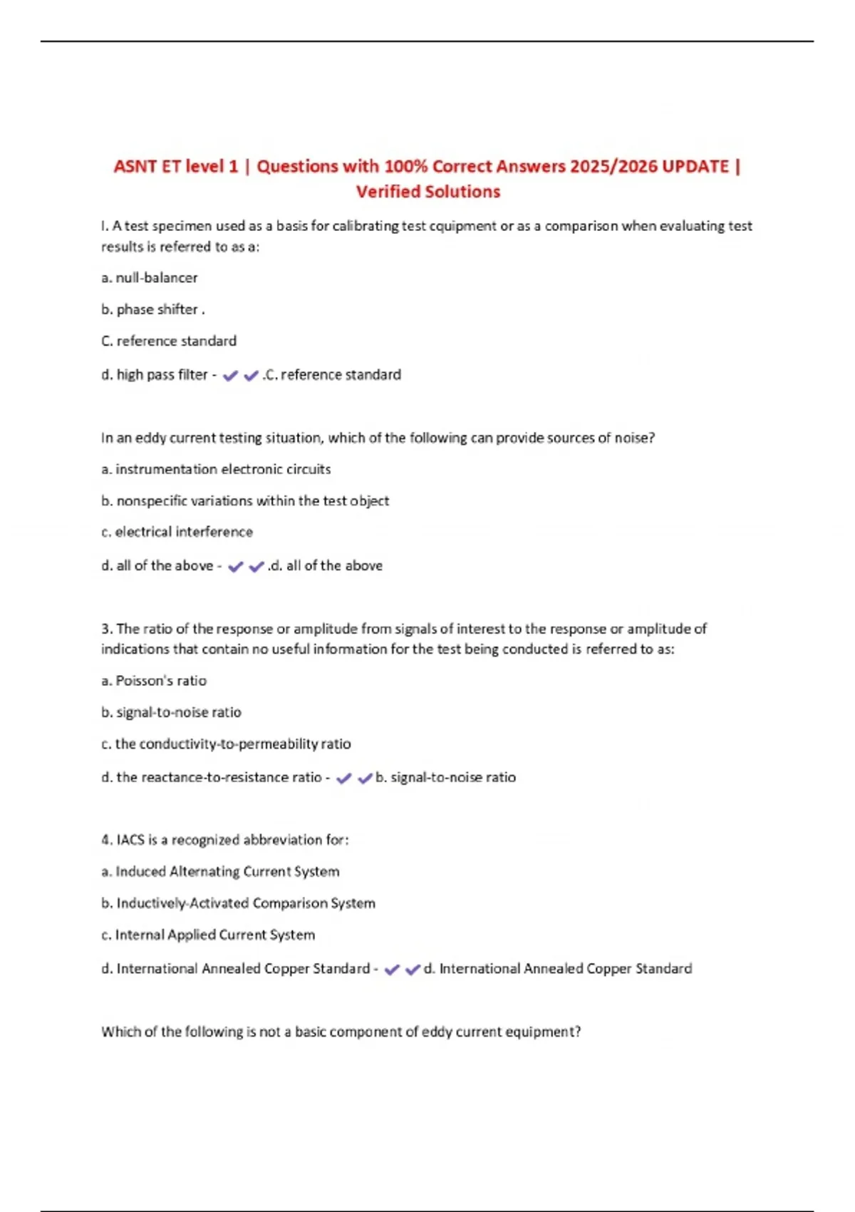 ASNT ET level 1 | Questions with 100% Correct Answers 2025/2026 UPDATE | Verified Solutions
