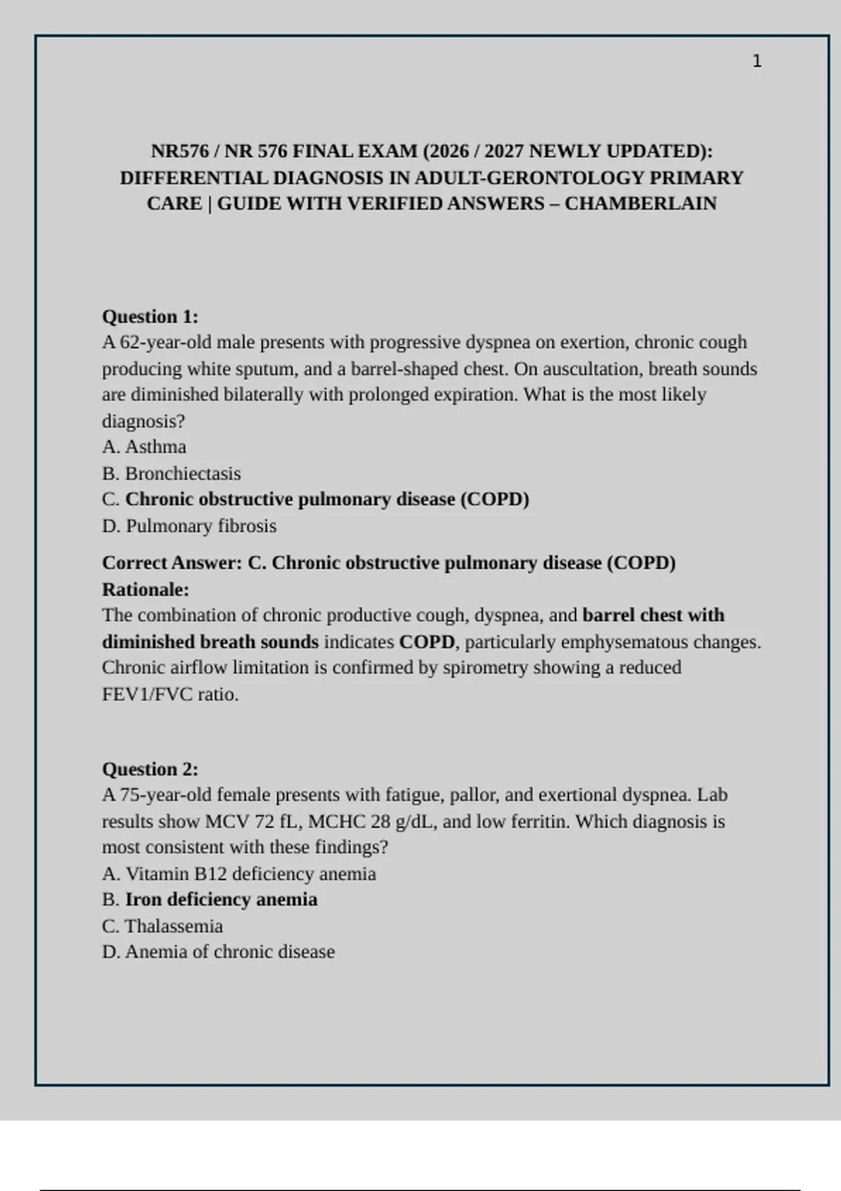 Correct Answer: C. Chronic obstructive pulmonary disease (COPD)