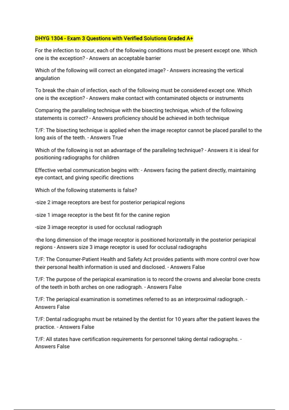 Answers False