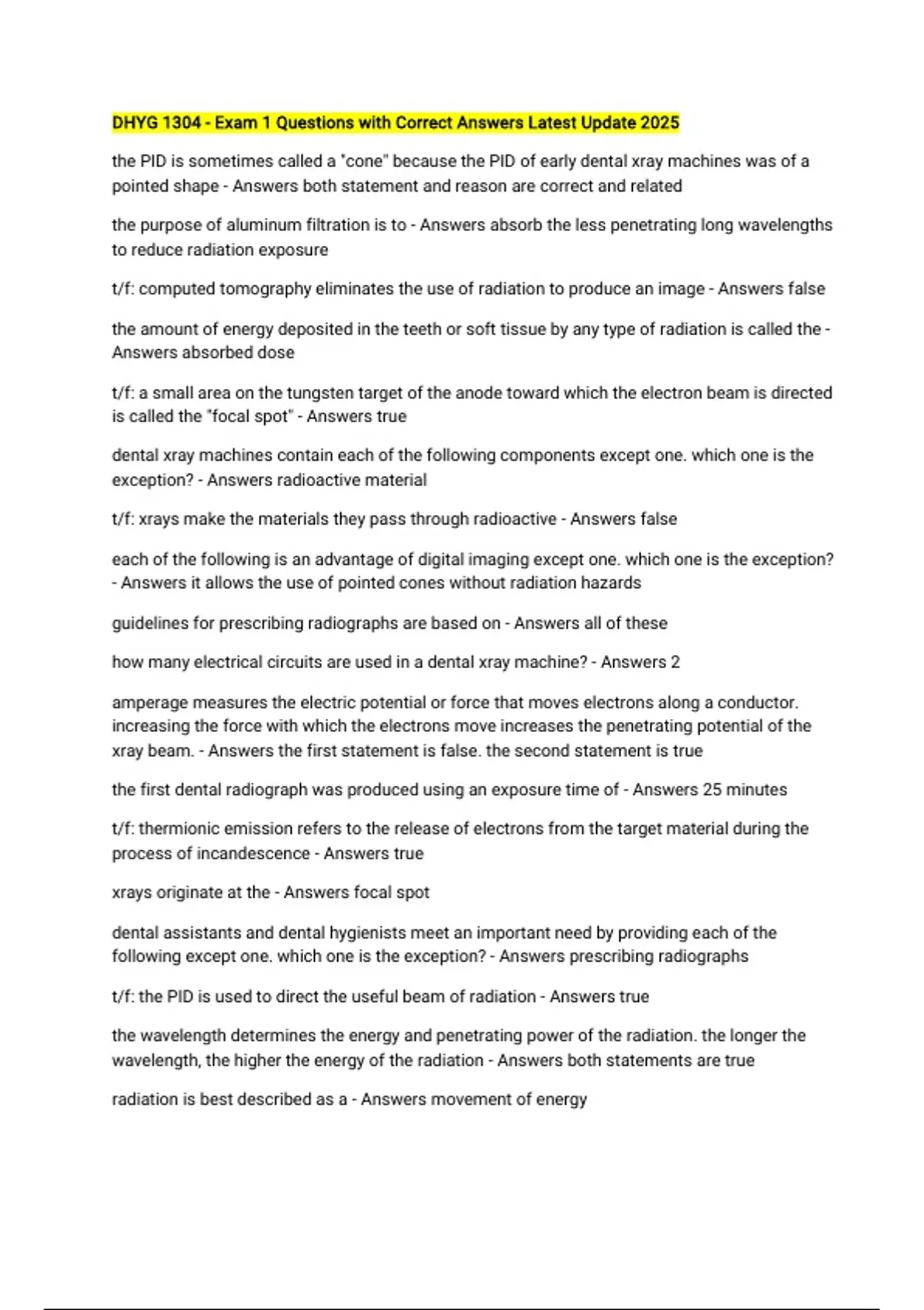 t/f: xrays make the materials they pass through radioactive - Answers false