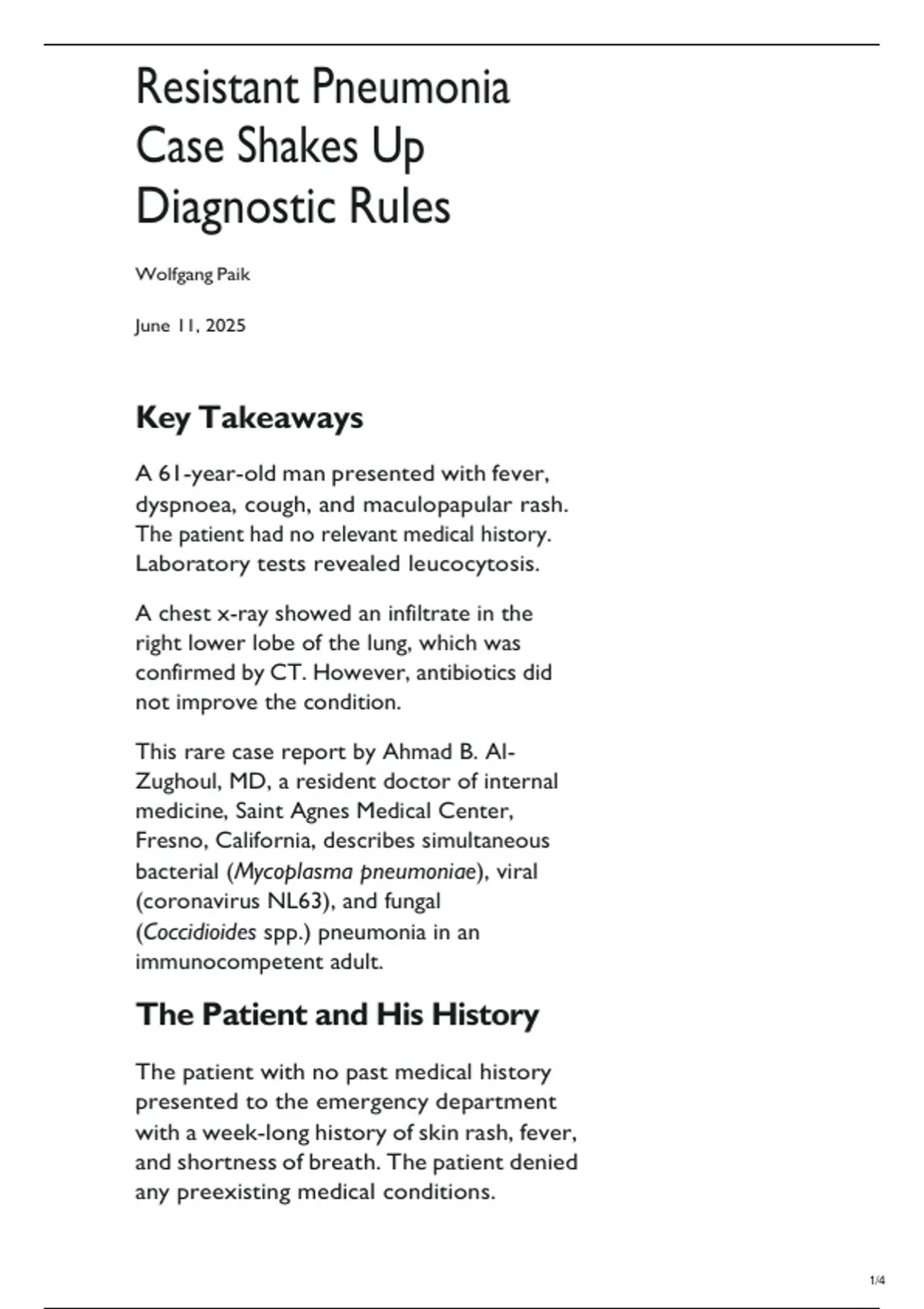 A Case of Resistant Pneumonia Disrupts Diagnostic Guidelines