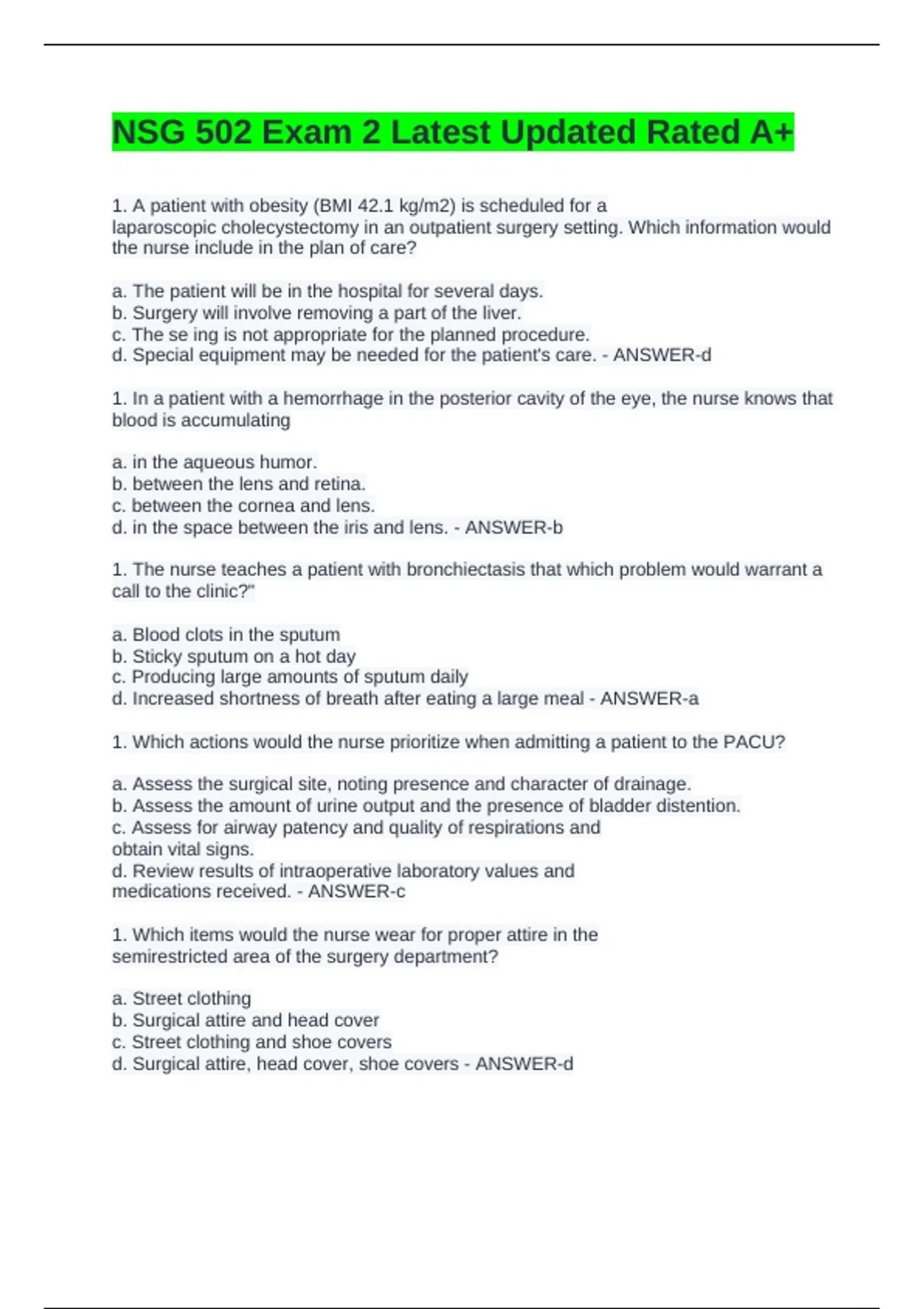 NSG 502 Exam 2 Latest Updated Rated A+
