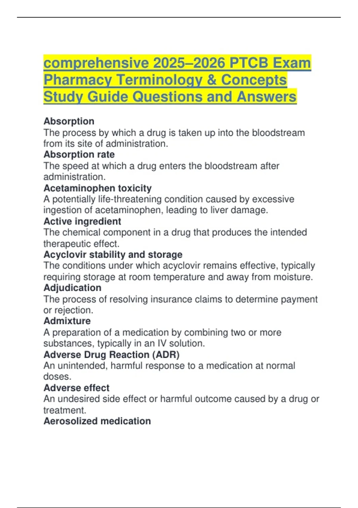comprehensive 2025–2026 PTCB Exam Pharmacy Terminology & Concepts Study Guide Questions and
