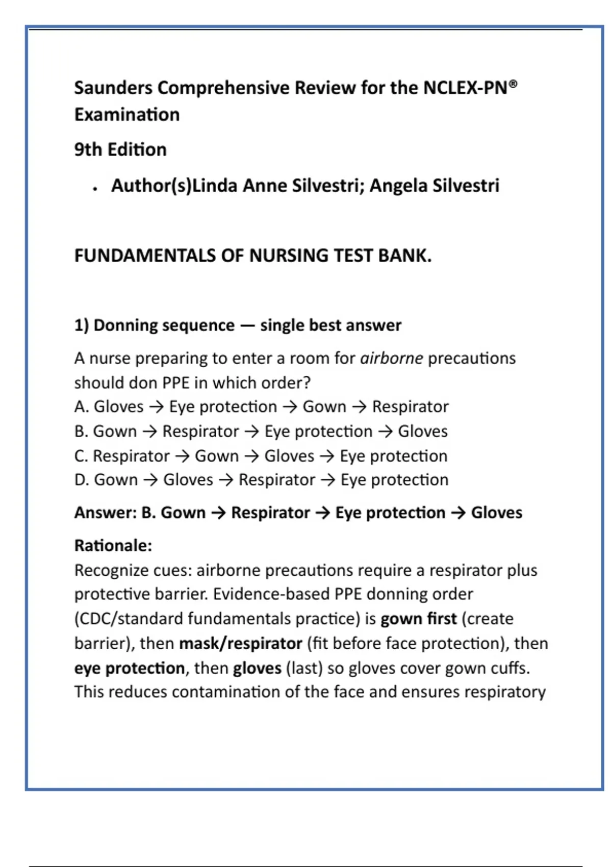 1) Donning sequence — single best answer