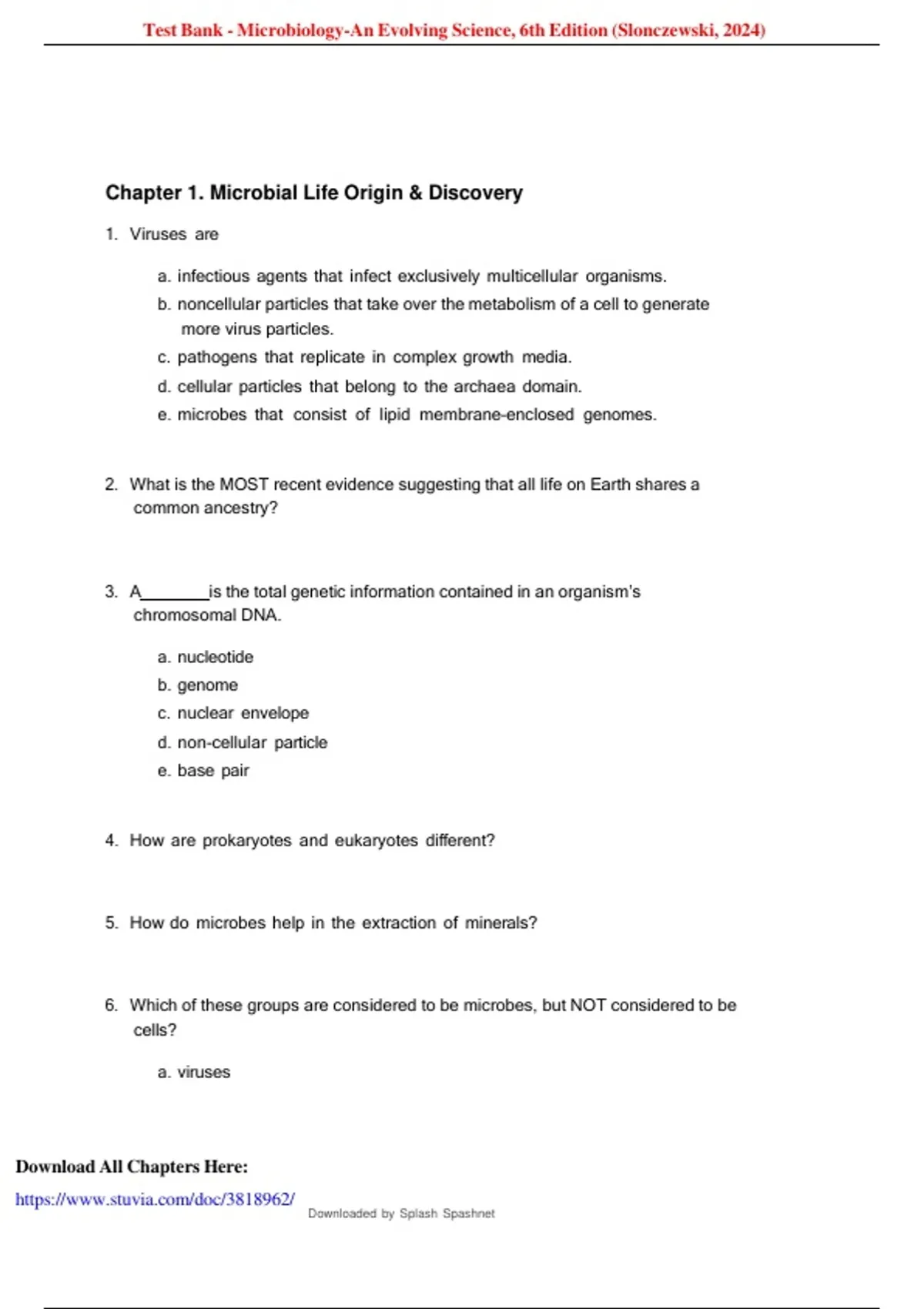 , Test Bank - Microbiology-An Evolving Science, 6th Edition (Slonczewski, 2024)