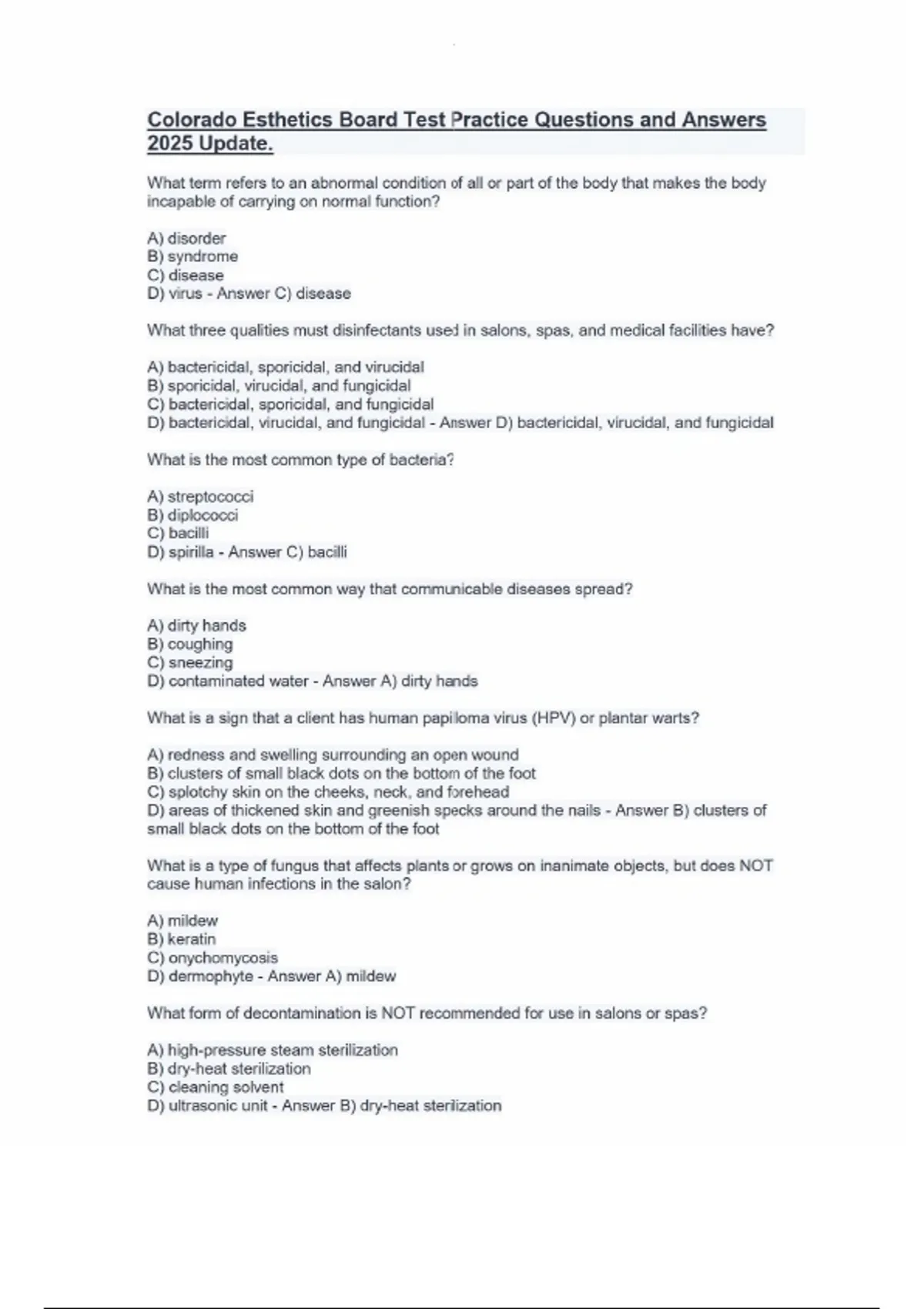 Colorado Esthetics Board Test Practice Questions and Answers 2025 Update.Colorado Esthetics Board Test Practice Questions and Answers 2025 Update.