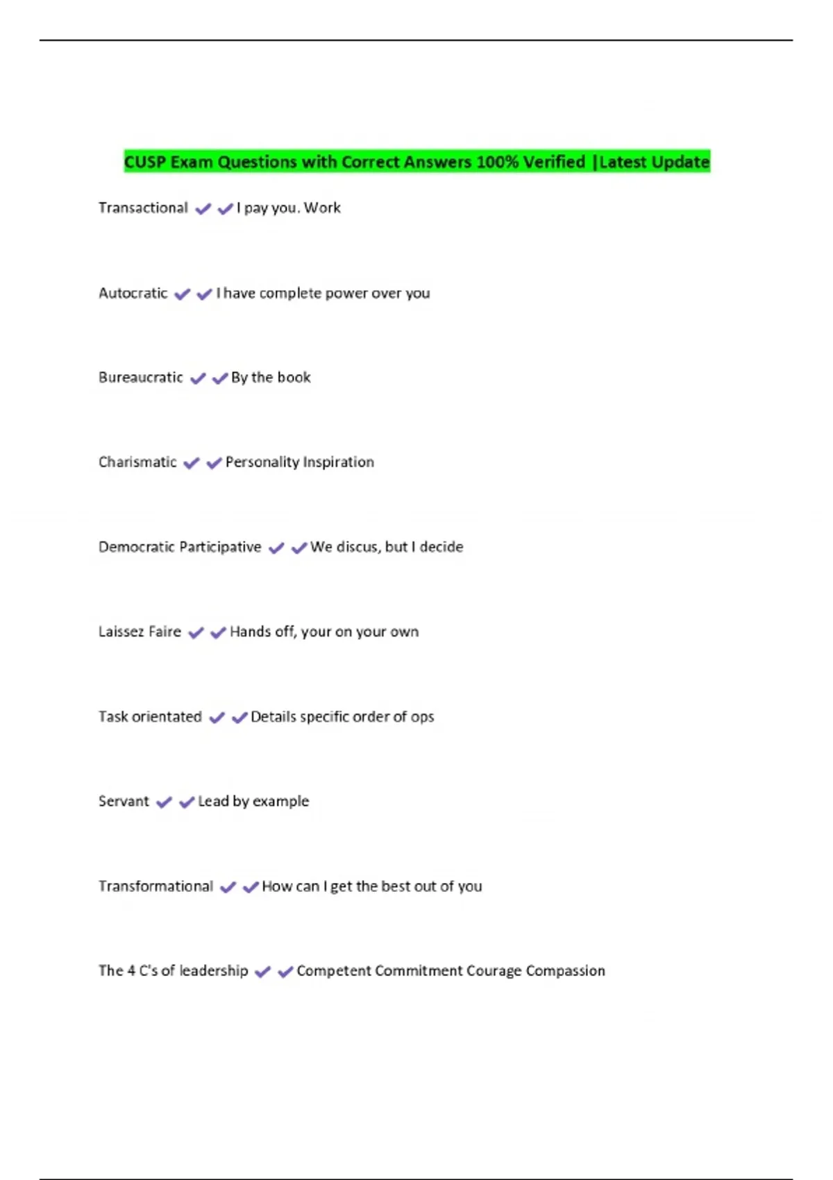 CUSP Exam Questions with Correct Answers 100% Verified |Latest Update