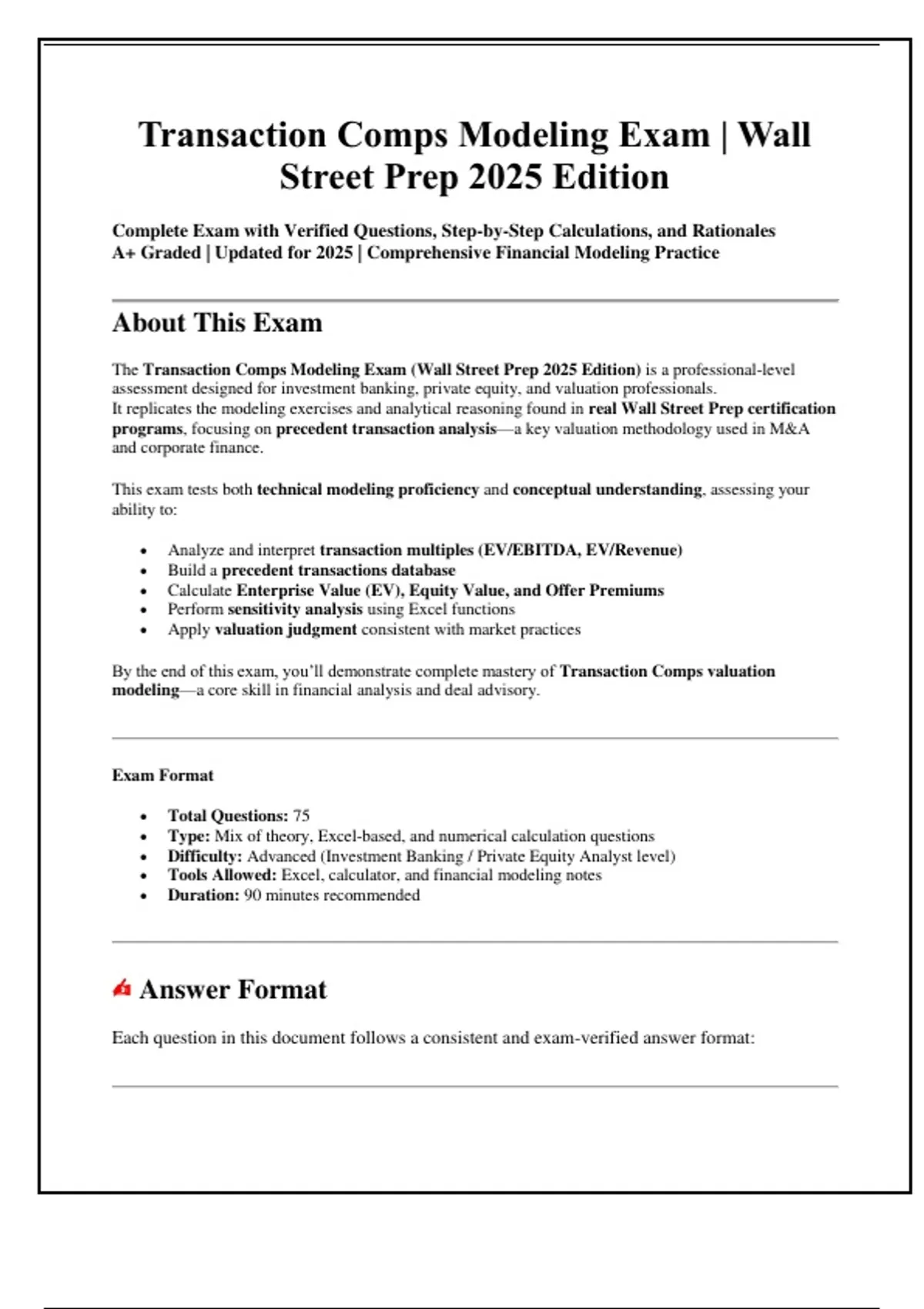 The Transaction Comps Modeling Exam (Wall Street Prep 2025 Edition) is a professional-level
