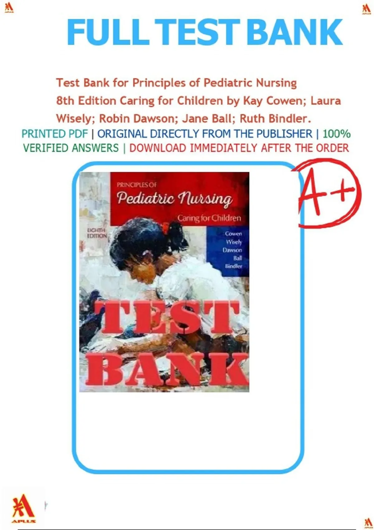Test bank for Principles of Pediatric Nursing, Caring for Children by Kay Cowen; Laura Wisely; Robin Dawson; Jane Ball; Ruth Bindler.|All 31 chapters covered|Graded A+