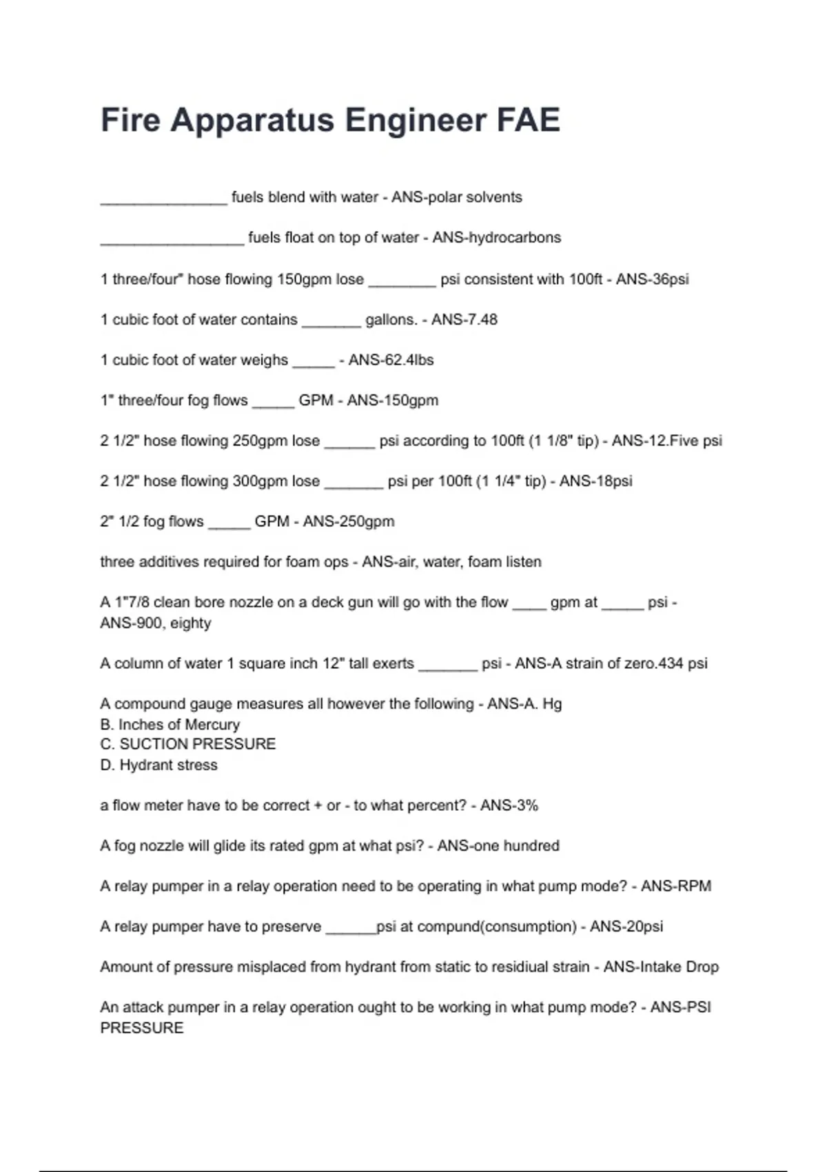 Fire Apparatus Engineer FAE NEWEST 2026/2027 ACTUAL EXAM COMPLETE QUESTIONS AND CORRECT DETAILED ANSWERS (VERIFIED ANSWERS) |ALREADY GRADED A+||BRAND NEW!!