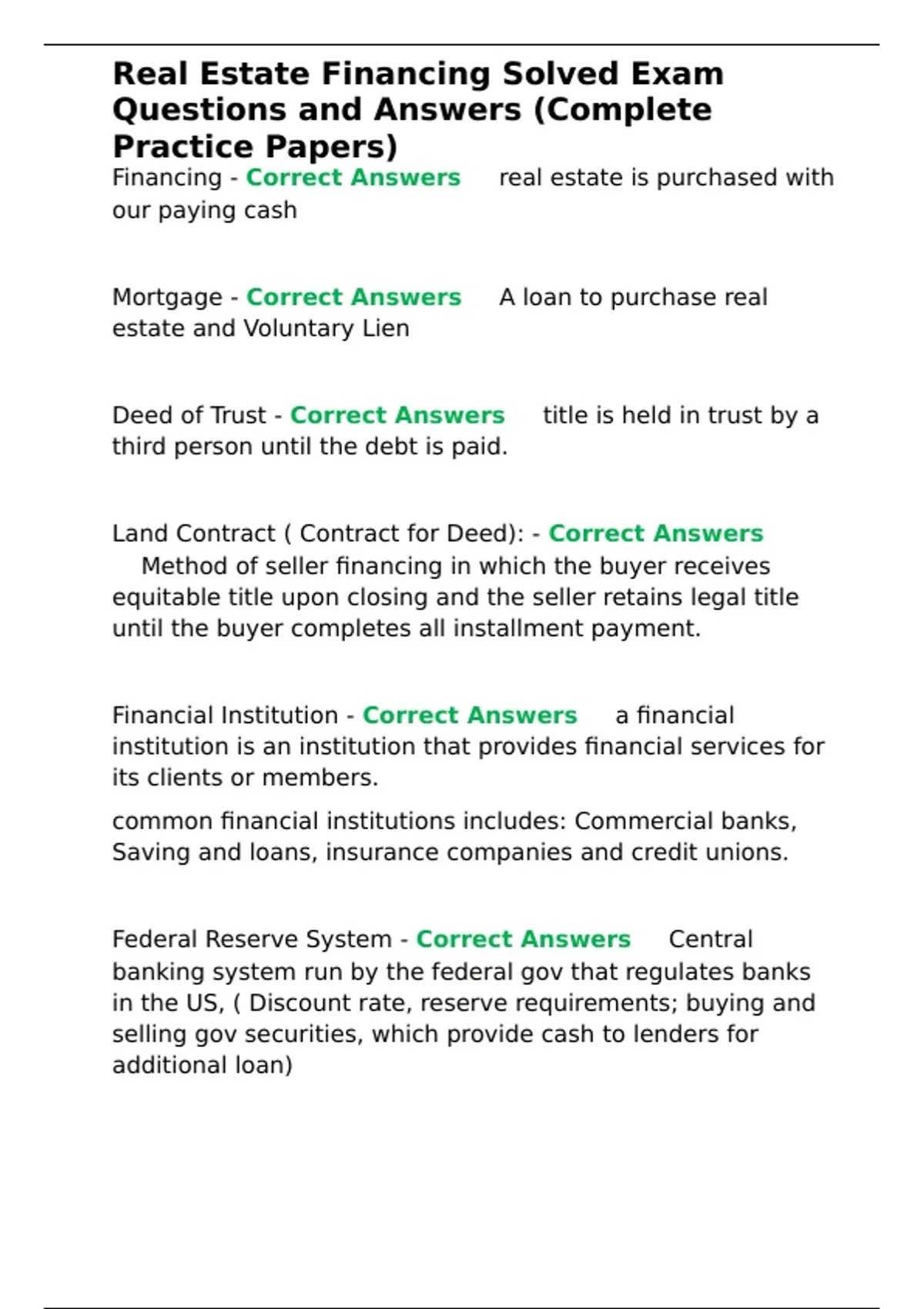 Real Estate Financing Solved Exam Questions and Answers (Complete Practice Papers)
