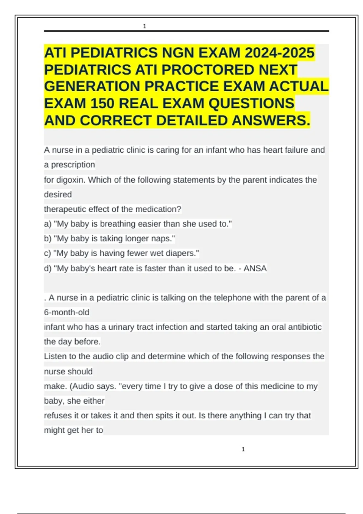 ATI PEDIATRICS NGN EXAM PEDIATRICS ATI PROCTORED NEXT GENERATION PRACTIC