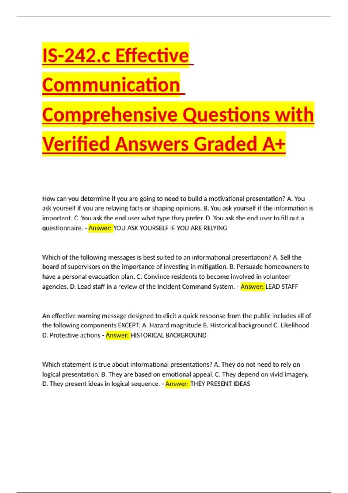 Which of the following messages is best suited to an informational presentation? A. Sell the
