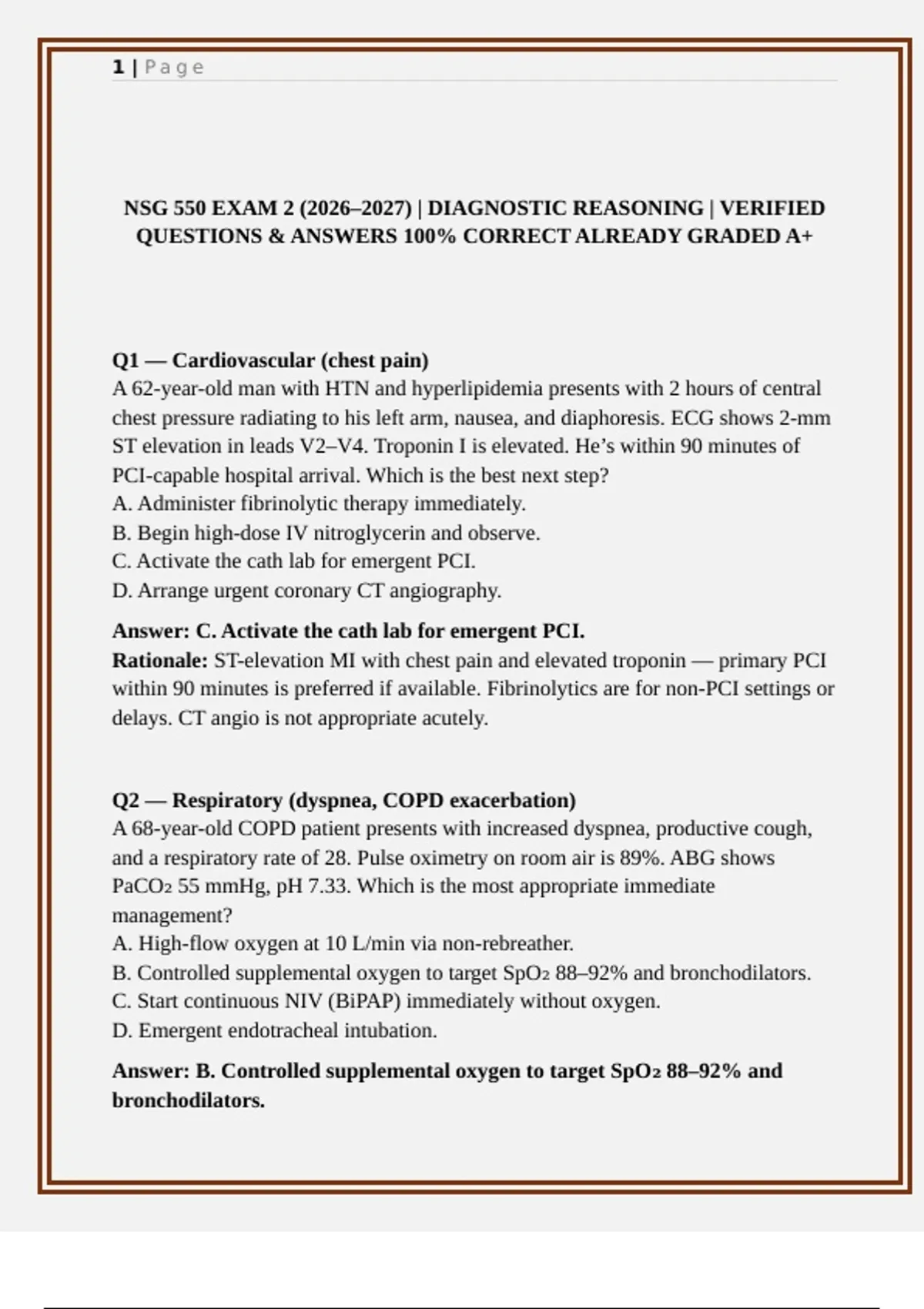 NSG 550 EXAM 2 (2026–2027) | DIAGNOSTIC REASONING | VERIFIED