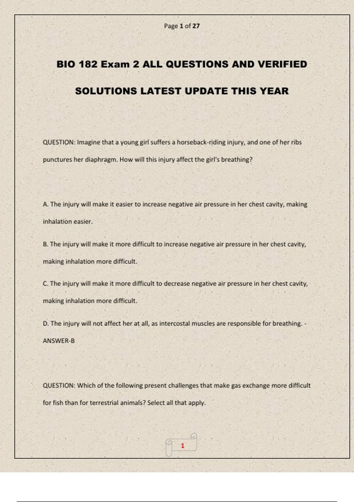 BIO 182 Exam 2 ALL QUESTIONS AND VERIFIED