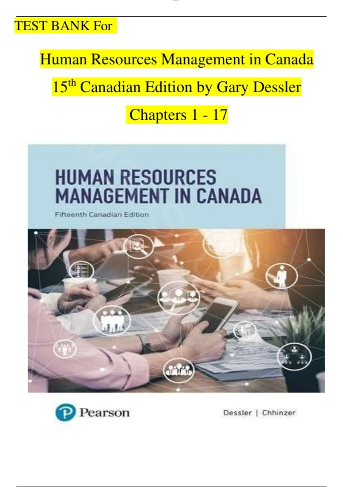 TEST BANK For Human Resources Management in Canada 15th Canadian Edition by Gary Dessler||ISBN:9780137292141