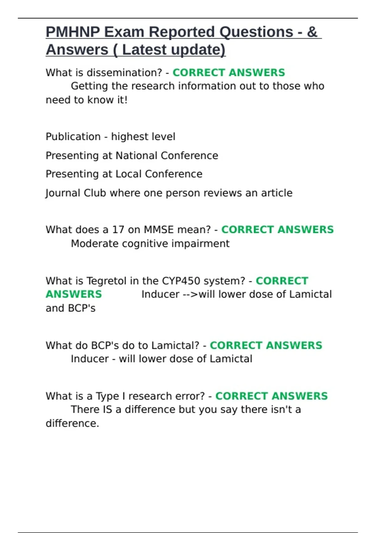PMHNP Exam Reported Questions - &
