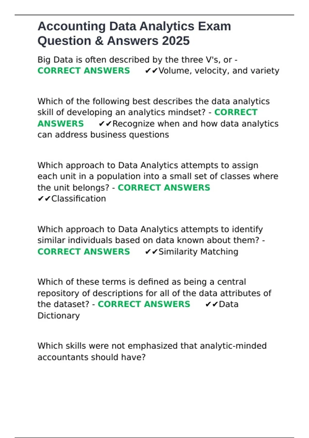 Accounting Data Analytics Exam Question & Answers 2025.docx
