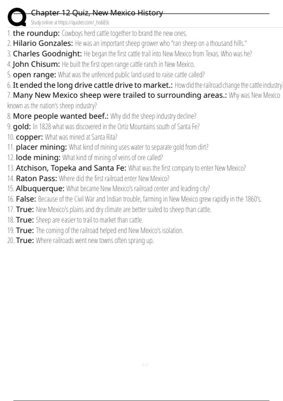 Chapter 12 Quiz, New Mexico History
