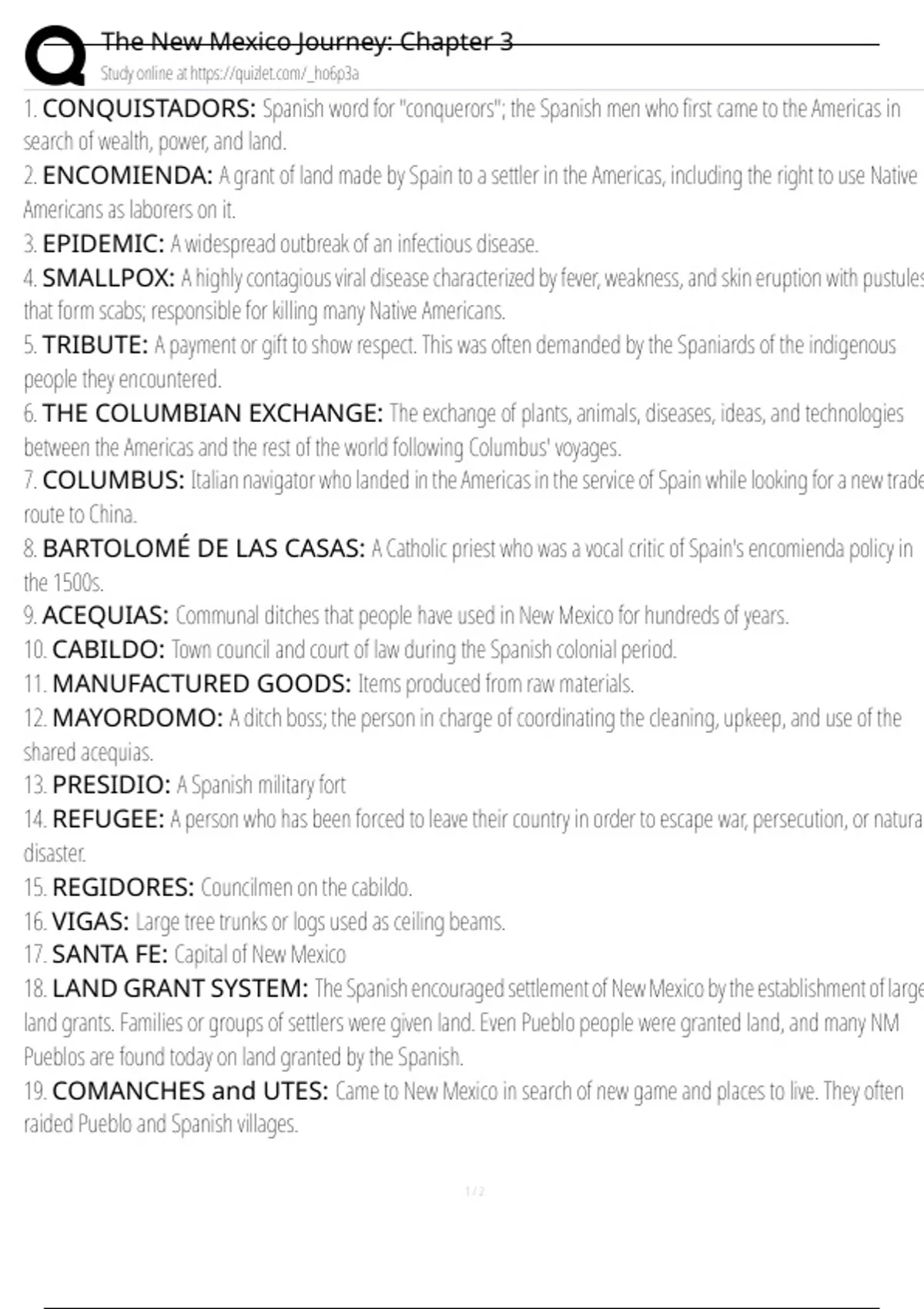 1. CONQUISTADORS: Spanish word for "conquerors"; the Spanish men who first came to the Americas in