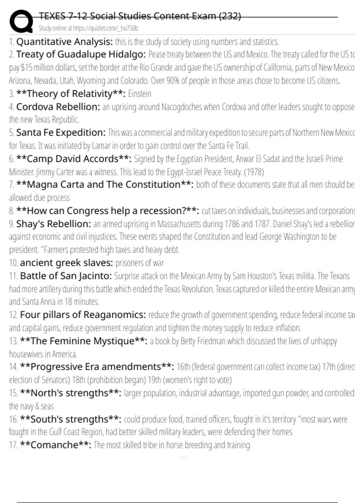 , TEXES 7-12 Social Studies Content Exam (232)
