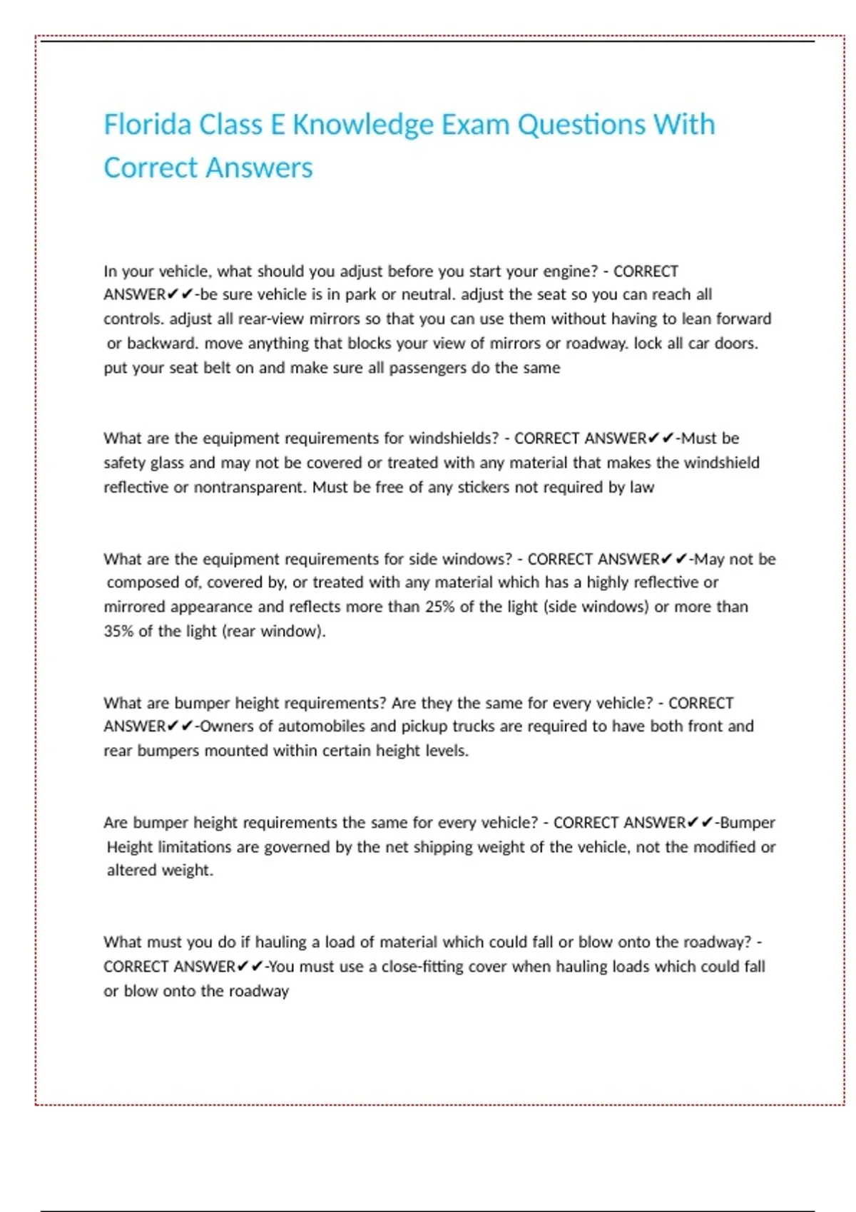 Florida Class E Knowledge Exam Questions With