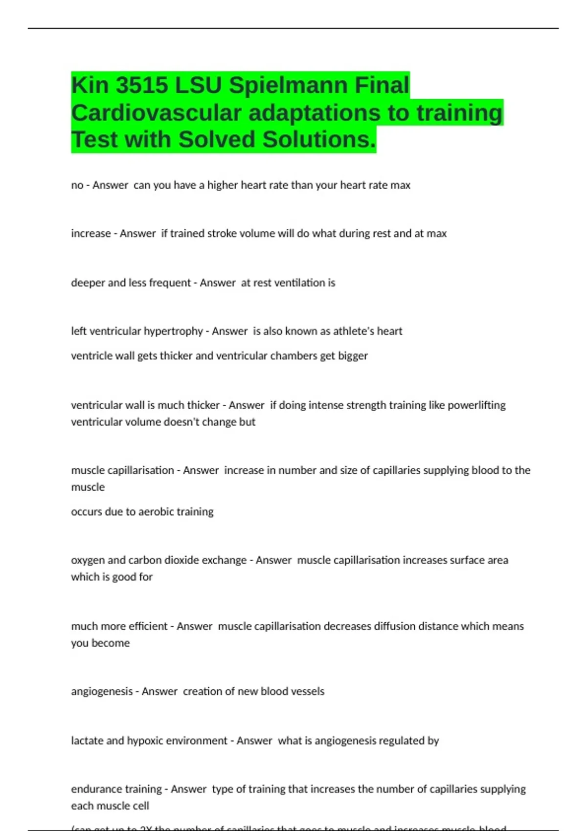 Cardiovascular adaptations to training