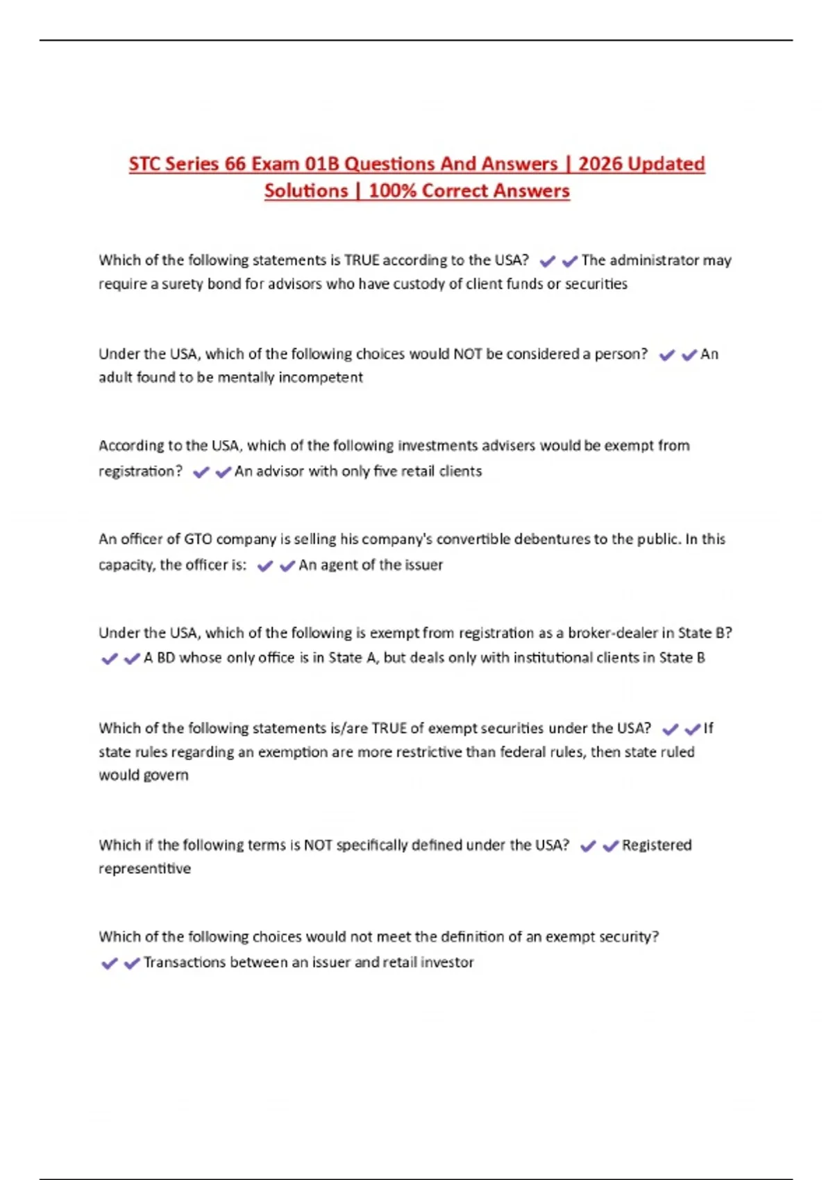 STC Series 66 Exam 01B Questions And Answers | 2026 Updated Solutions | 100% Correct Answers