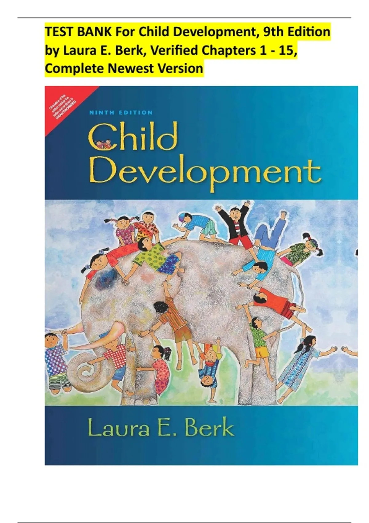 Test Bank For Child Development 9th Edition by Laura E. Berk ,Chapter 1 - 15 | All Chapters | Complete Latest Updated Version| Already Graded A+