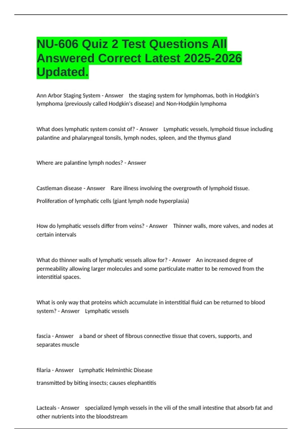 What does lymphatic system consist of? - Answer Lymphatic vessels, lymphoid tissue including