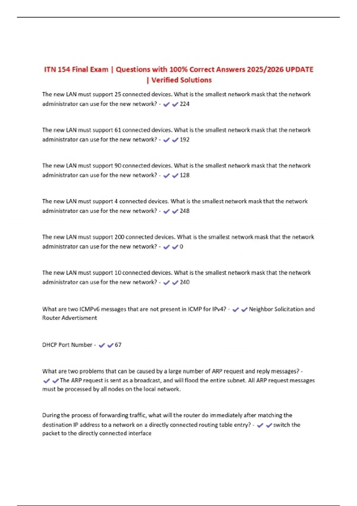 ITN 154 Final Exam | Questions with 100% Correct Answers 2025/2026 UPDATE | Verified Solutions