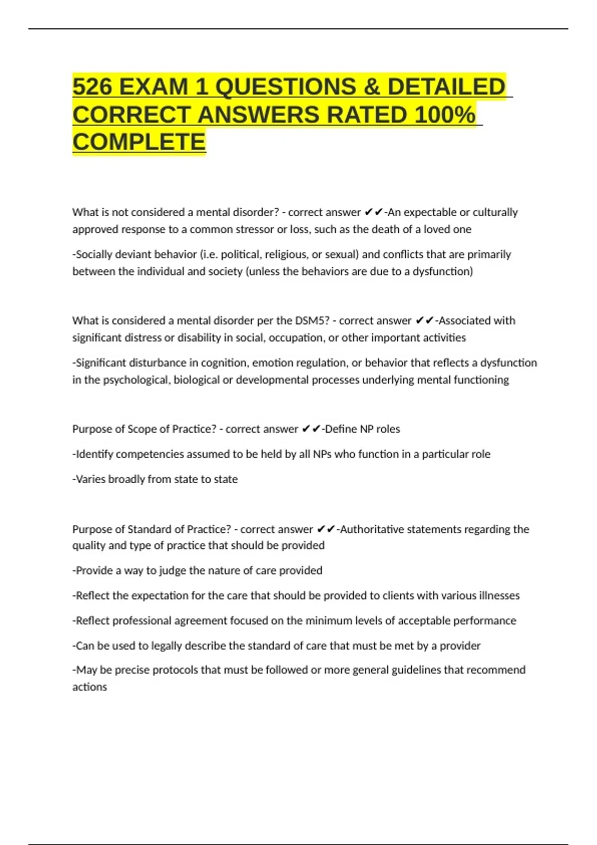 What is not considered a mental disorder? - correct answer ✔✔-An expectable or culturally