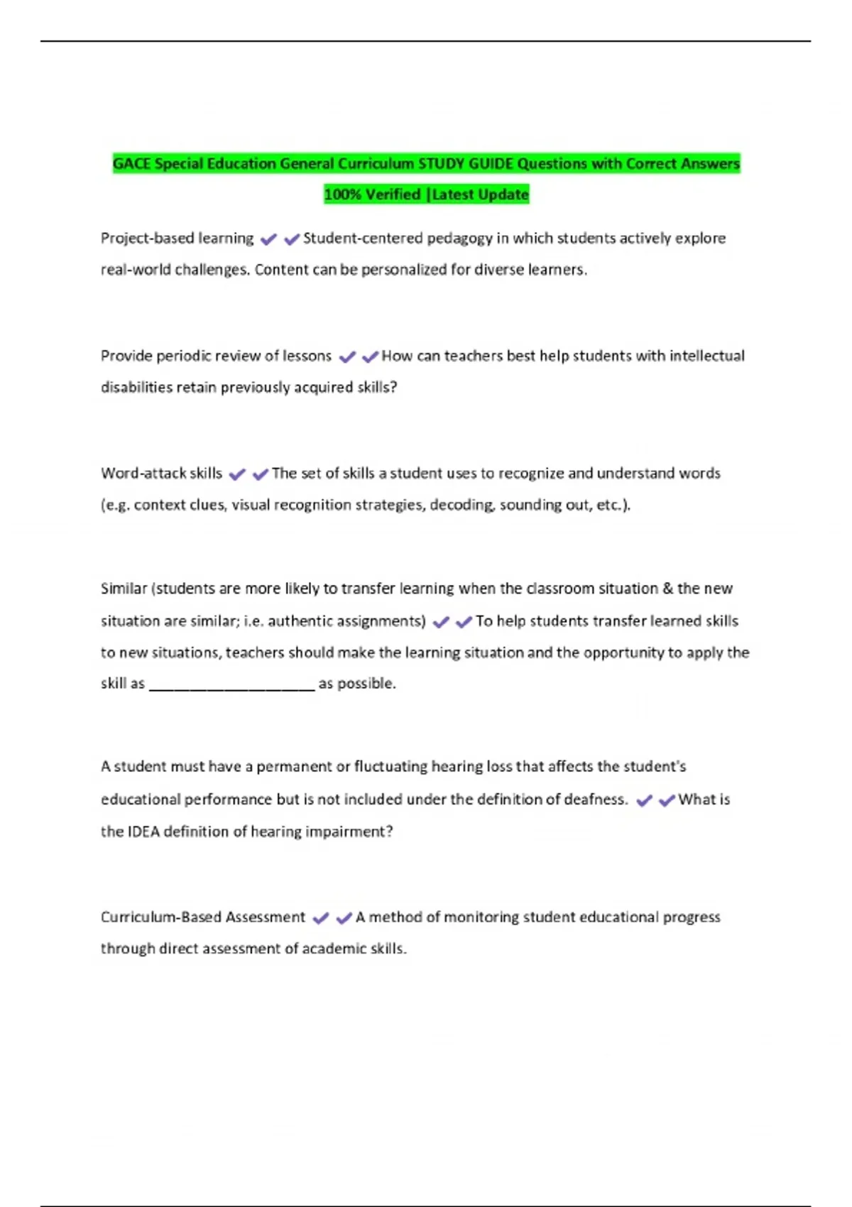 GACE Special Education General Curriculum STUDY GUIDE Questions with Correct Answers 100% Verified |Latest Update