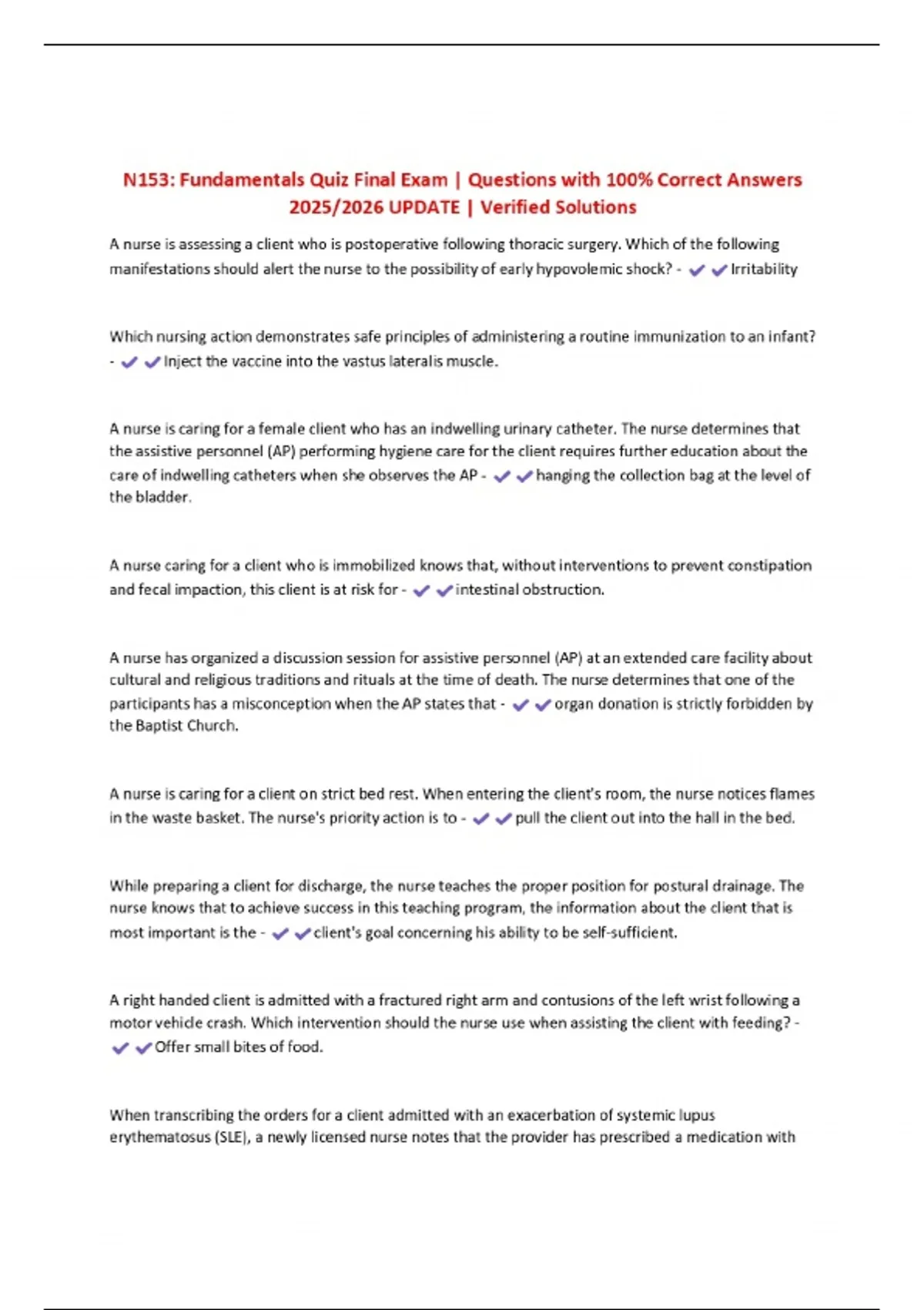 N153: Fundamentals Quiz Final Exam | Questions with 100% Correct Answers 2025/2026 UPDATE | Verified Solutions