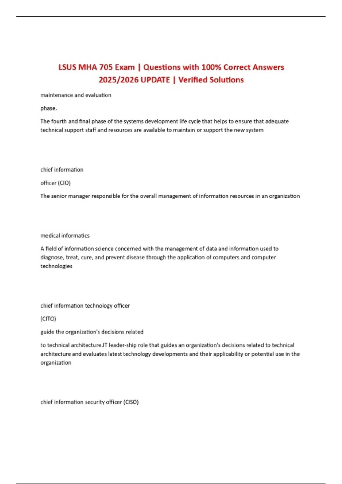 LSUS MHA 705 Exam | Questions with 100% Correct Answers 2025/2026 UPDATE | Verified Solutions