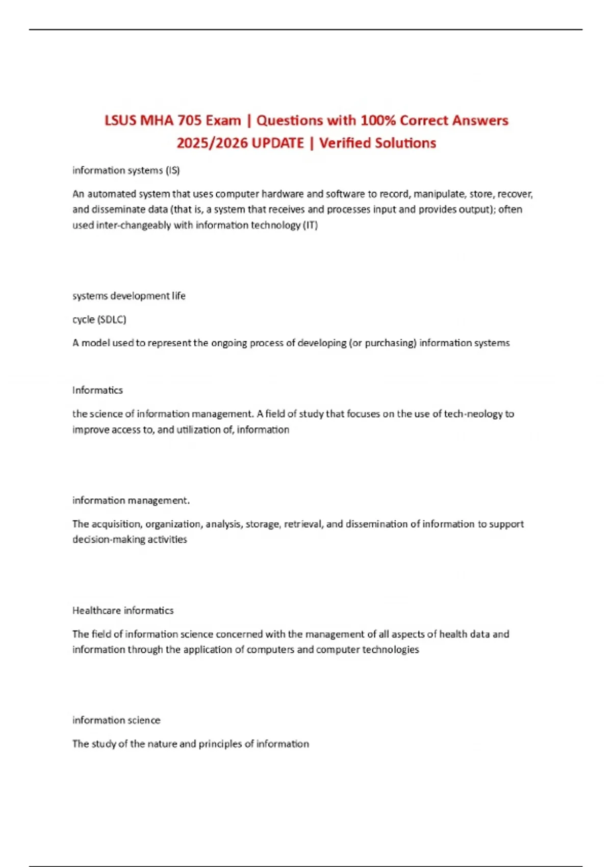 lsus mha 705 exam questions with 100 correct an