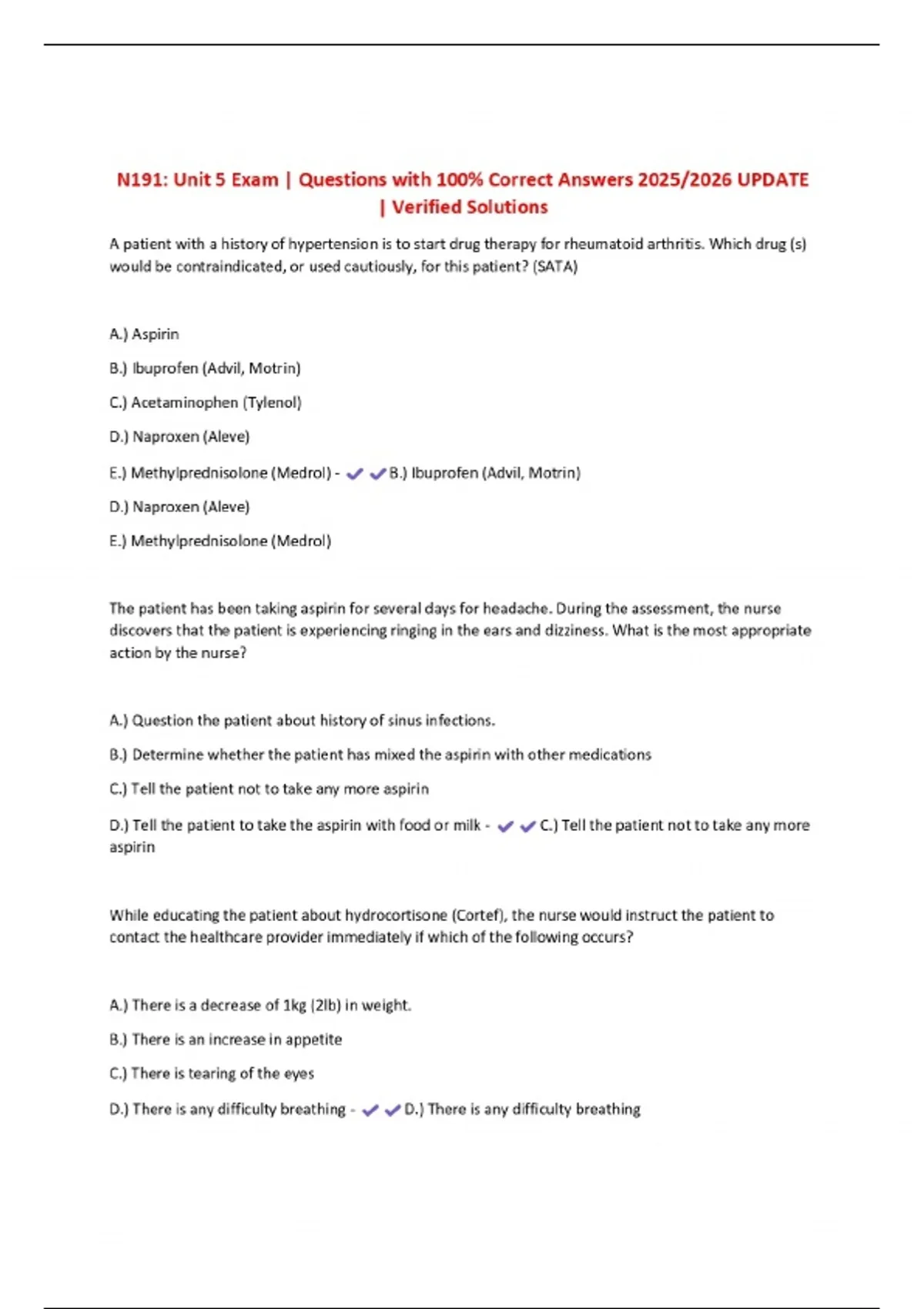 N191: Unit 5 Exam | Questions with 100% Correct Answers 2025/2026 UPDATE | Verified Solutions