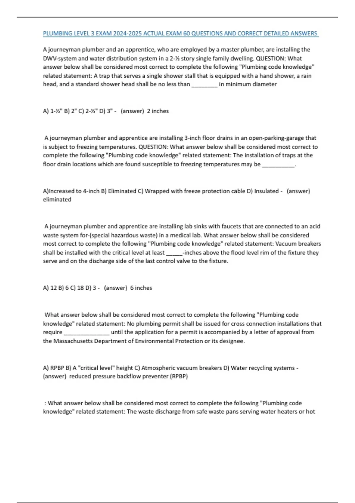 , PLUMBING LEVEL 3 EXAM 2024-2025 ACTUAL EXAM 60 QUESTIONS AND CORRECT DETAILED ANSWERS