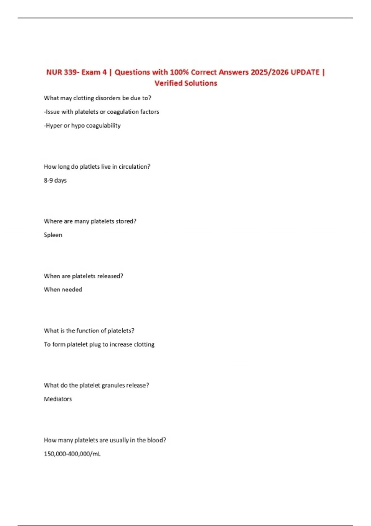 NUR 339- Exam 4 | Questions with 100% Correct Answers 2025/2026 UPDATE | Verified Solutions
