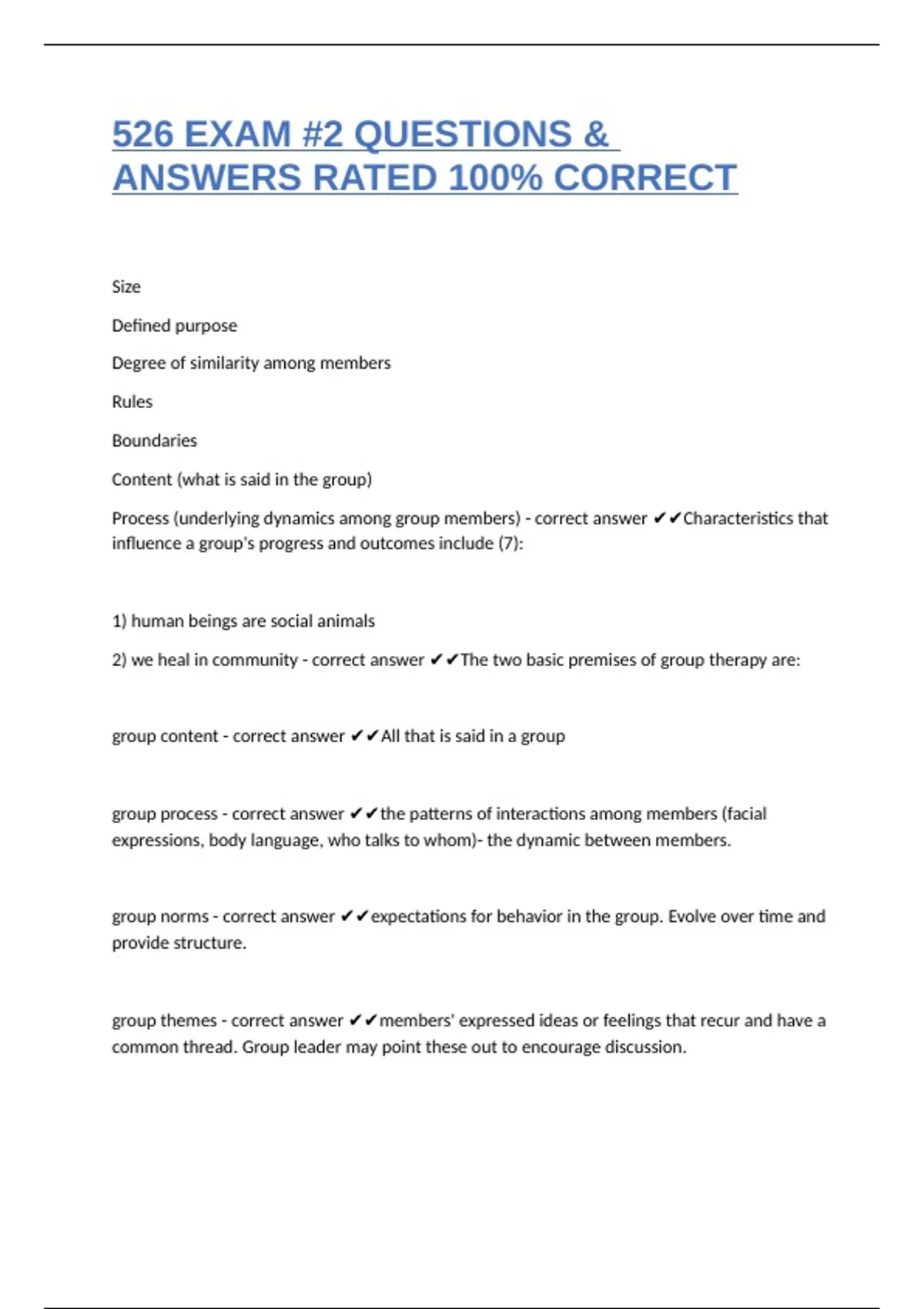 526 EXAM #2 QUESTIONS & ANSWERS RATED 100% CORRECT designed to help nursing students review and prepare for exams in NSG 526, a graduate-level nursing course often focused on Advanced Pathophysiology, Advanced Pharmacology, or Advanced Health Assessment, depending on the program.