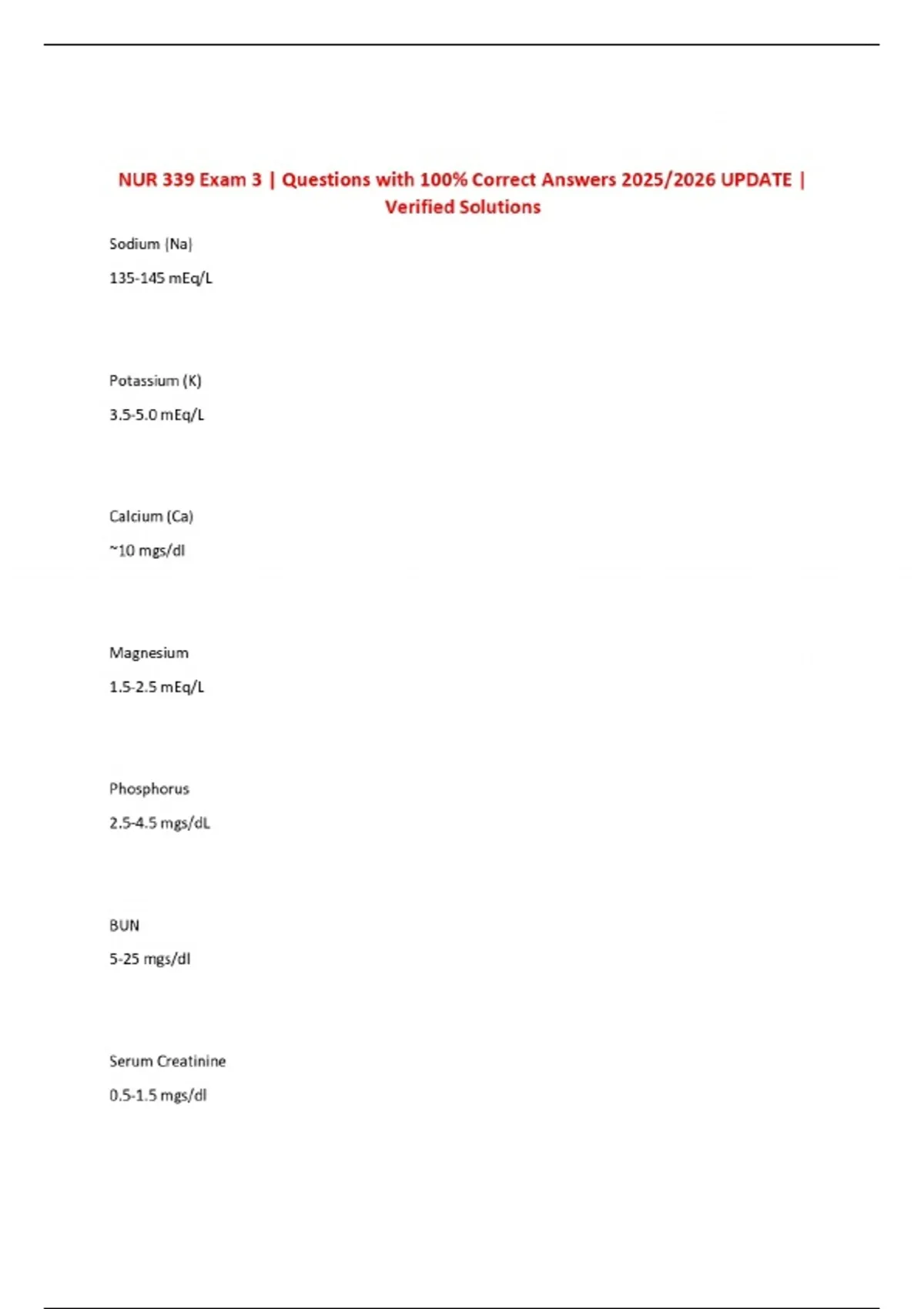 NUR 339 Exam 3 | Questions with 100% Correct Answers 2025/2026 UPDATE | Verified Solutions